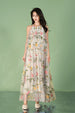 Casual Sleeveless Floral Halter Long A-line Dress features a relaxed halter neckline and sleeveless design for effortless comfort. The flowing A-line silhouette and vibrant floral print add freshness, making it ideal for summer vacations or beach parties.