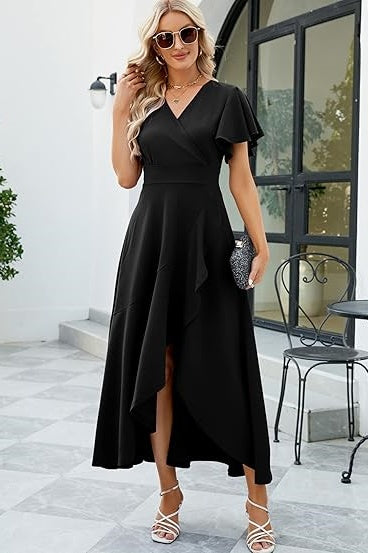 This elegant Hi-Lo Short Sleeve V-neck Chiffon Evening Dress is perfect for any special occasion. The delicate ruffles add a touch of femininity while the V-neckline elongates the figure. Made from high-quality chiffon, this dress is both comfortable and stylish. Stand out from the crowd with this lovely dress.