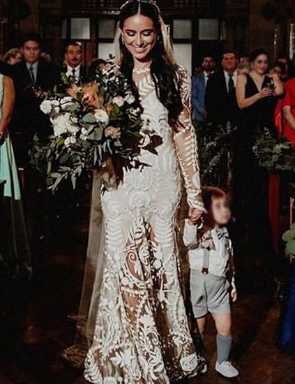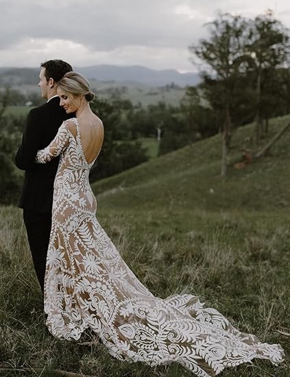 Open Back Mermaid Lace Long Sleeve Wedding Dress with Train