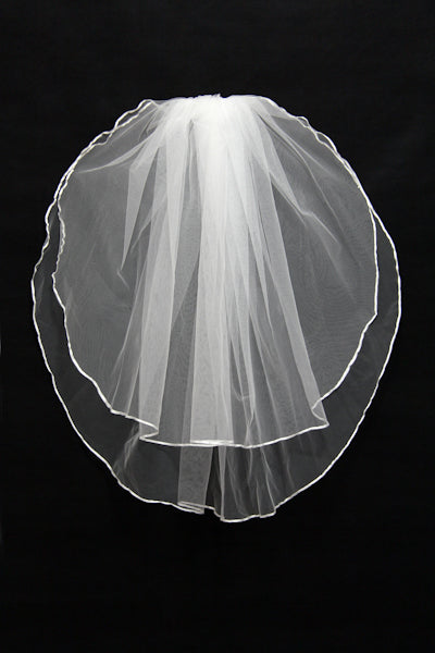 Elevate your bridal look with this Simple Pencil Edge Two Tier Tulle Wedding Veil. Crafted from delicate tulle, its clean pencil-edge finish offers understated elegance. The two-tier design adds subtle volume and dimension, complementing a variety of wedding gowns with timeless sophistication. Perfect for brides seeking a classic veil that enhances without overwhelming.